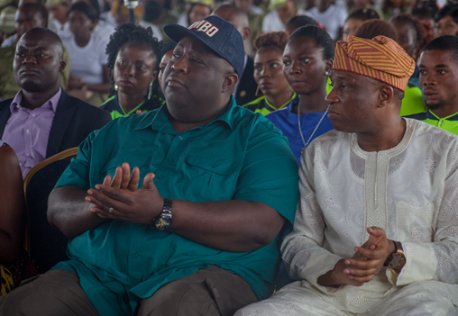 Photo: Lagos State commissioner for Youth and Social Development, Mr. Agboola Dabiri and Mr. Tunji Bello, Secretary to the State Government (SSG) at the Mega Youth Conference.