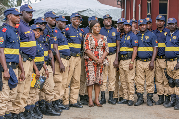 Photo: Founder of Rise Networks, Toyosi Akerele –Ogunsiji with security personnel during the Lagos Youth Week 2018.