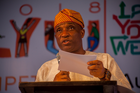 Photo: Representative of Governor Akinwunmi Ambode and Secretary to the Lagos State Government (SSG), Mr Tunji Bello, delivering the keynote speech at the Mega Youth Conference event of the Lagos Youth Week.