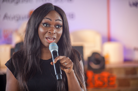 Photo: Dr. Ola Brown-Orekunri, Founder of West Africa’s first indigenous air ambulance service, Flying Doctors Nigeria, speaking at the Mega Youth Conference.
